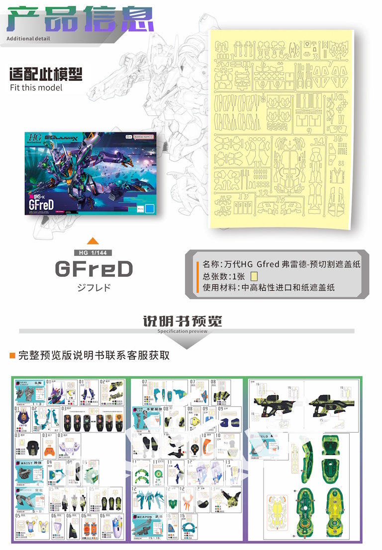 Pre-cut masking tape template for HG Gfred